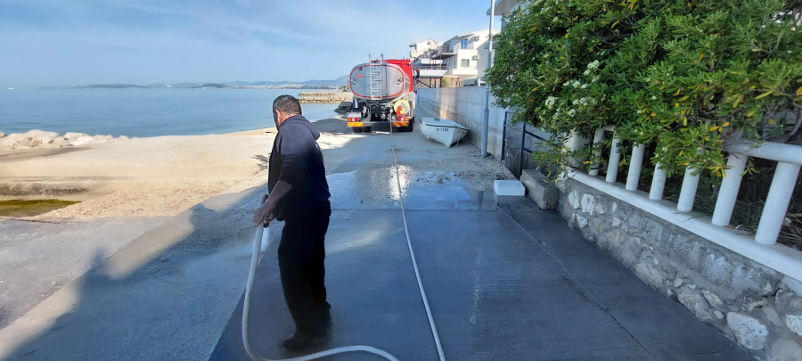 Nakon zimskog perioda lebićadi, dovršetka sanacije još jednod dijela šetnice i sadnje tamarisa, naši vrijedni vatrogasci ovu nedjelju u jutro sa novom cisternom su krenuli u pranje šetnice.