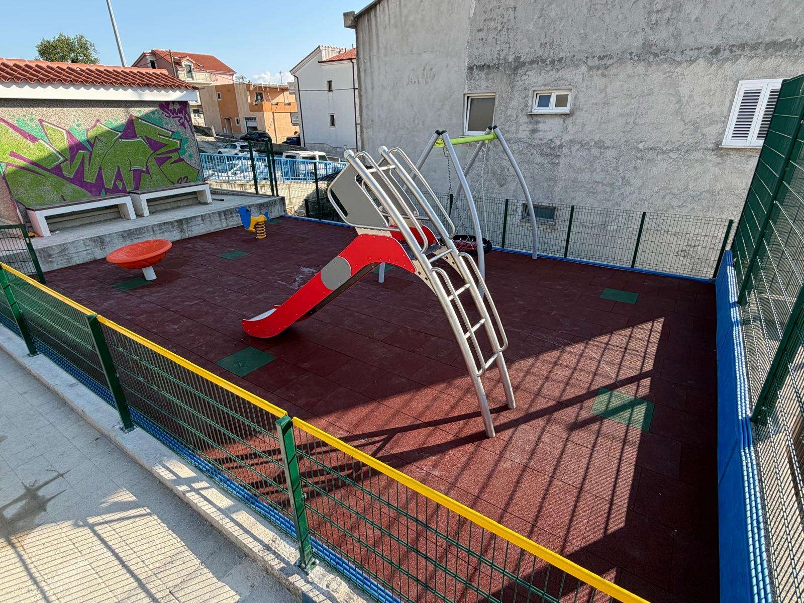 U sklopu radova izvršeni su pripremni i zemljani radovi te su izrađeni temelji za postavljanje urbane opreme i dječjih igrala. Na postojećem igralištu zamijenjene su dotrajale i oštećene sprave novom funkcionalnom opremom, a postavljena je i zaštitna gumena podloga kako bi se djeci osigurali sigurniji uvjeti za igru, rekreaciju i druženje.